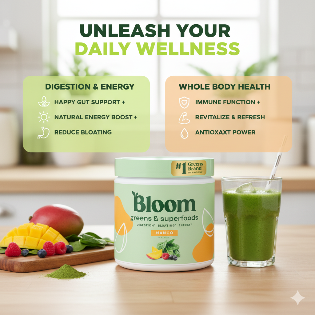 هل تجد صعوبة في الحصول على ما يكفي من الخضراوات الغنية بالعناصر الغذائية في نظامك اليومي؟ « بلوم  » يحل هذه المشكلة. يجمع هذا المزيج القوي والمتكامل من الأغذية الفائقة بين أفضل ما في الطبيعة – من السبيرولينا والكلوريلا العضوية إلى الفطور التكيفية – لضمان حصول جسمك على الفيتامينات والمعادن ومضادات الأكسدة التي يحتاجها للازدهار. امزج مغرفة واحدة في الماء أو مشروبك المفضل وابدأ يومك بالشعور بالنشاط والتركيز والتوازن. إنها أسهل خطوة يمكنك اتخاذها نحو حياة أكثر صحة وحيوية.
